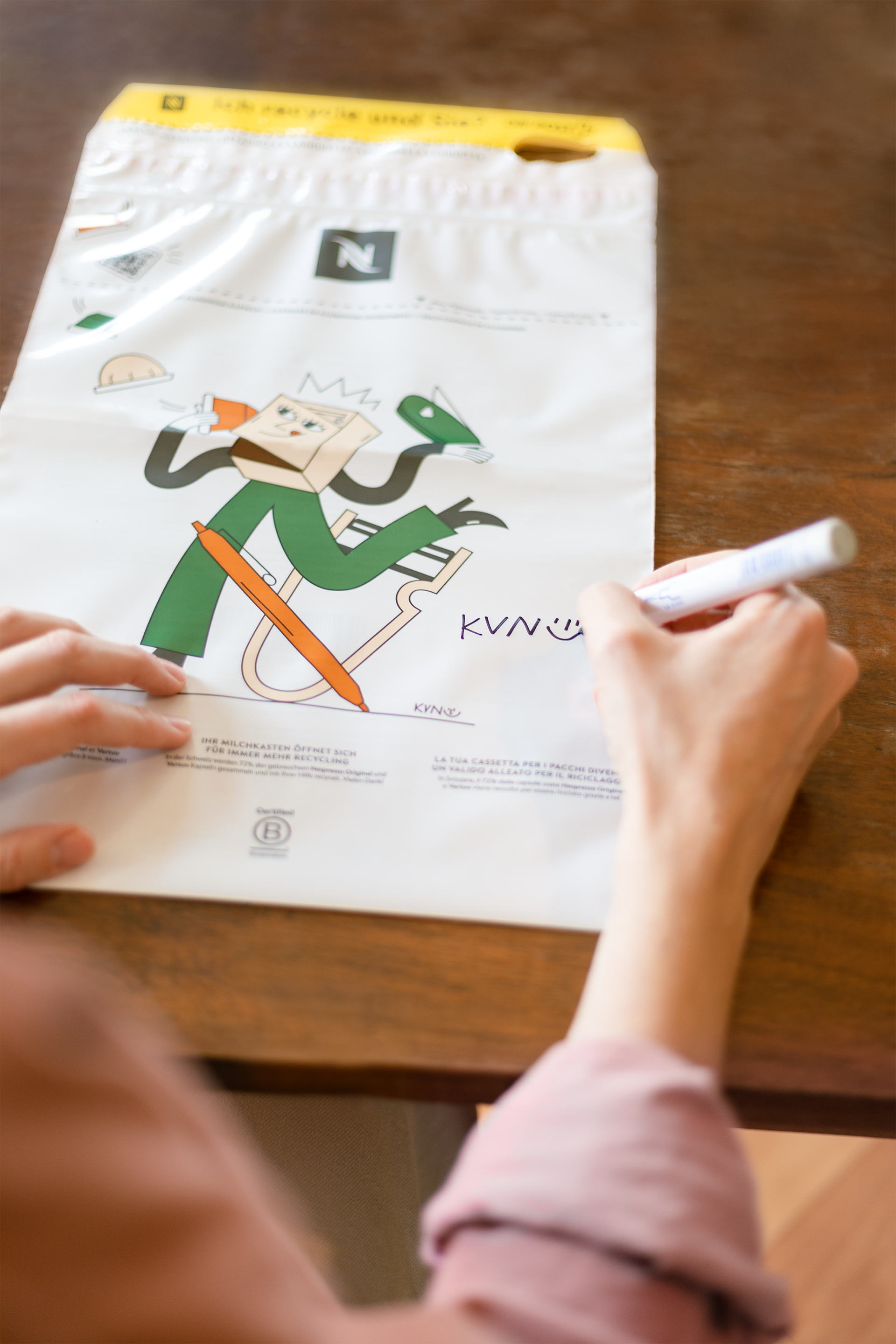 From Social contents, online platforms, Boutiques' displays to the official Nespresso website, these new recycling bags were important for the brand and the social community. Signed versions from Katrin were also put in contest so people can get their really exclusive piece. So next time you order your favorite Nespresso, a surprise might awaits you.