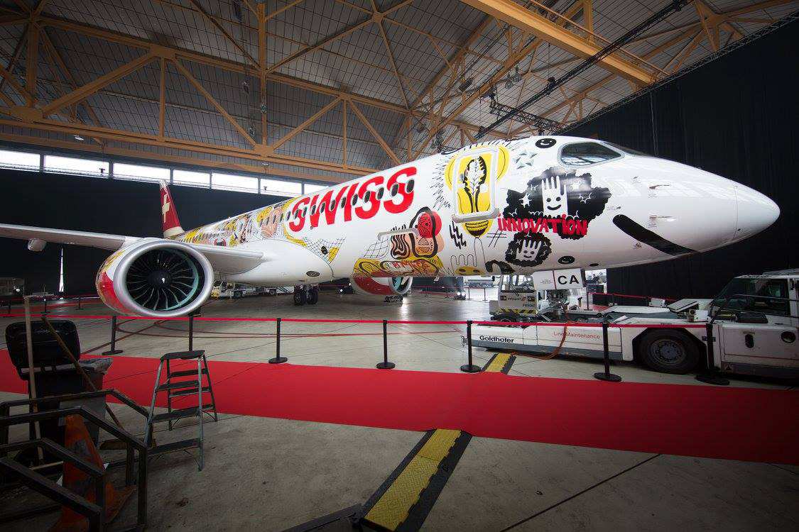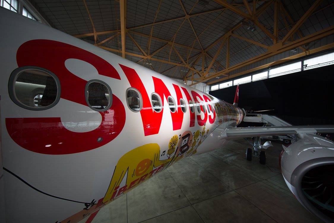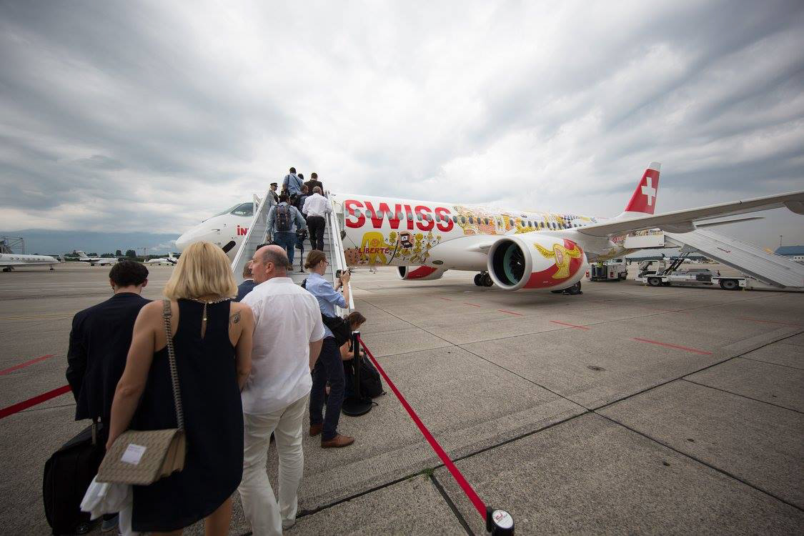 As SWISS bought brand new Bombardier planes for Geneva we decide to create something unique for the region: a livery with all the stories of the romands. To do so, we asked them to choose their day to day heroes and she their stories on our dedicated website: http://www.swiss-monavion.ch. Once people had vote we asked Mathias Forbach (alias "Fichtre") to create the first and unique Swiss Romand plane. The livery took place in Geneva in June 2017.